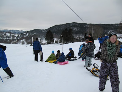 På Per og Jorunn sine marker. De har brukt de siste dagene til å kjøre opp løyper. Her var det laga konkurransar i skiskyting, langrenn, akebretthopping og slalomaking. Det var og o løp( 2 runder der man skal gå på likes mulig tid på rundene). Veldig greit der alle har lik sjanse.